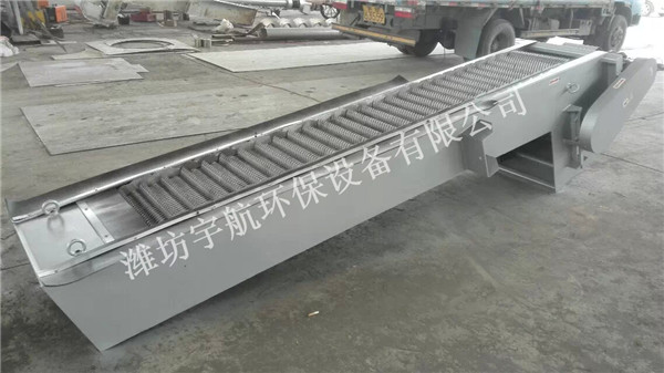 按水流方向耙齒鏈類同于格柵,在耙齒鏈軸上裝配的耙齒間隙可以根據使用條件進行選擇。當耙齒把流體中的固態懸浮物分離后可以保證水流暢通流過。整個工作過程是連續的,也可以是間歇的。