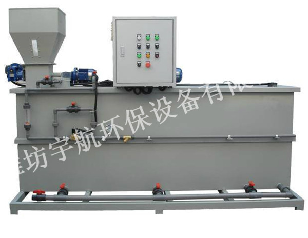 PAM加藥裝置根據所需藥劑濃度,在攪拌箱內配制,經攪拌器攪拌均勻后投入溶液箱、用計量泵(加藥泵)向投藥點或指定的系統中輸送所配制的溶液。成套加藥裝置具有結構緊湊、安全簡單、操作使用簡便等特點。該裝置還可根據用戶不同工藝流程的要求,進行有針對性的設計、配置必要的部件,實現功能適合(如自動遠程控制)、經濟實用。